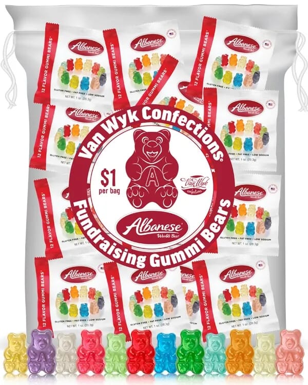 $1 Albanese Gummi Bears are a delicious addition to any fundraising campaign. Their cheap price, numerous flavors, and sweet fruity taste will make them a favorite among your customers!