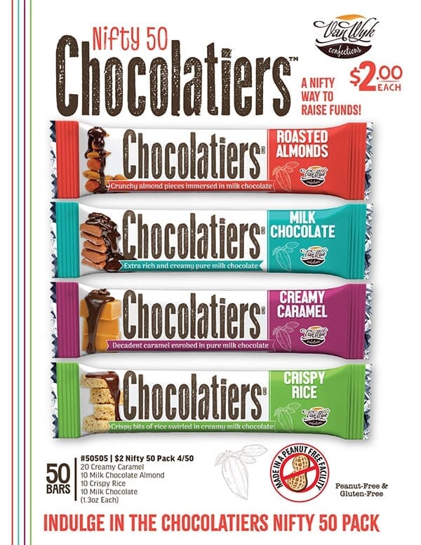 Chocolatiers Bars are a delicious addition to any fundraising campaign. They're inexpensive, feature 4 of the top flavors, and your supporters will likely buy several at a time!
