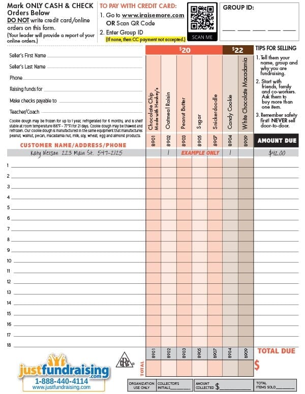 2.Have your group members show the order-taker to friends, family, neighbors, and or co-workers and invite them to purchase 1 or more tubs of cookie dough.(Note: Your participants will collect the funds up-front, and will take note of their supporter’s name and mailing address on the order form included).