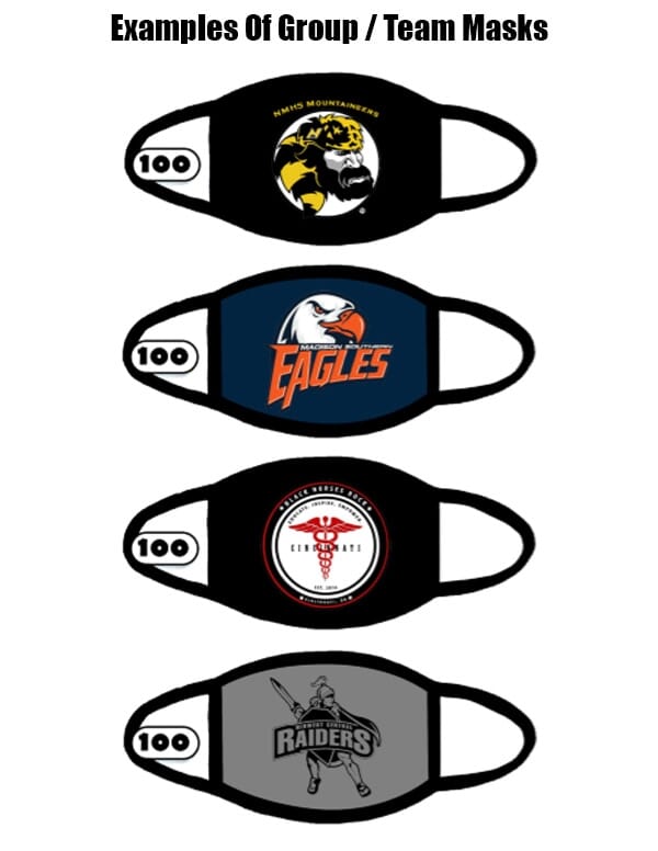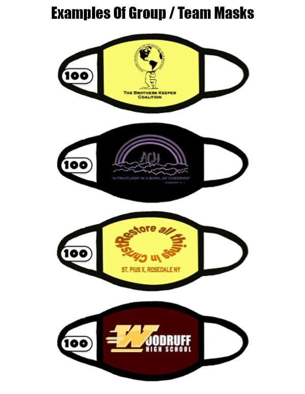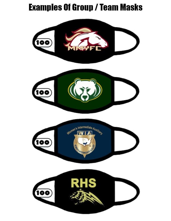 -Create a custom PDF Face Mask Order Form that includes multiple images of your group logo on the line-up of face masks. We will email you the custom order form which you can print out for members to sell in-person.