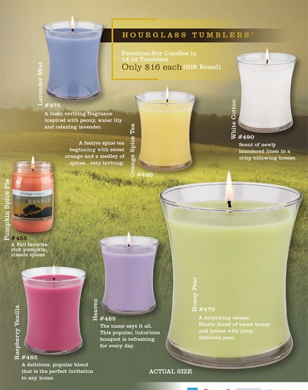 The Earth Candle Sampler, includes 2 Candles of your choice. Choose from 18 amazing scents: Hot Apple Pie, Butter Cookies, Cinnamon Apple, Juicy Peach, Gardenia, Rain Forest, Salted Carmel, Brown Sugar & Vanilla, Pomegranate, Pumpkin Spice Pie, Vanilla Bean, Heaven, Honey Pear, Lavender Mist, Orange Spice Tea, Vanilla Raspberry, White Cotton. Your supporters will choose from Twelve 12-oz glass canning jars and six 14-oz glass tumblers