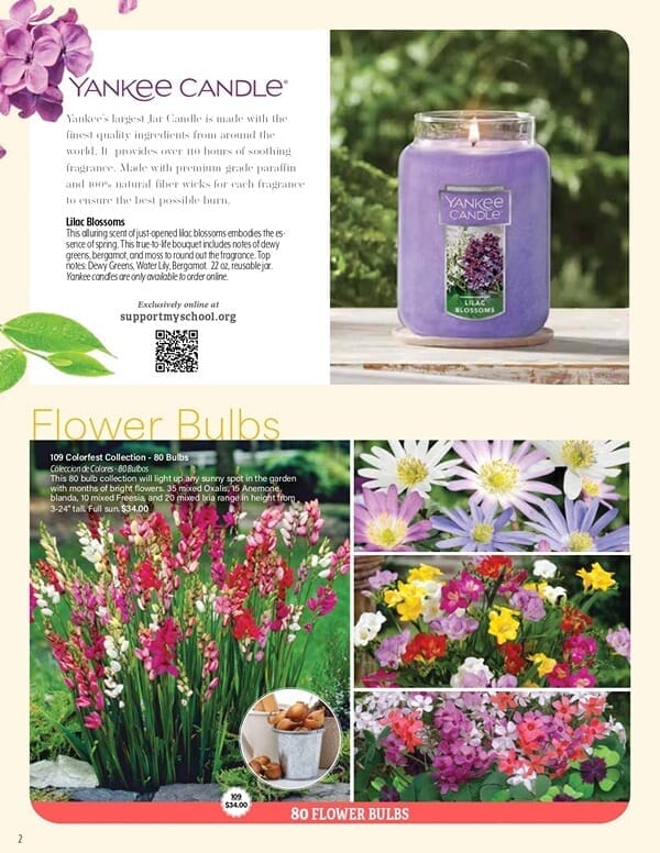 The Hello Spring Brochure offers an amazing array of gifts, snacks, kitchen items plus much more. A choice of 60 items priced between $10 - $40! Guaranteed to interest your supporters. Now includes Yankee Candles!
