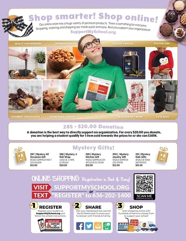 This year’s Spring shopper has something for everyone! It contains 60 items ranging from unique gifts, gourmet snacks, decadent chocolates, cheesecakes mixes, quality gift bags, tote bags, beautiful ower bulbs, Yankee candles, kitchenware and more! Many items just $10-$15 each.