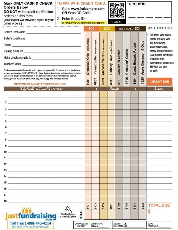 2.Have your group members show the order-taker to friends, family, neighbors, and or co-workers and invite them to purchase 1 or more tubs of cookie dough.(Note: Your participants will collect the funds up-front, and will take note of their supporter’s name and mailing address on the order form included).