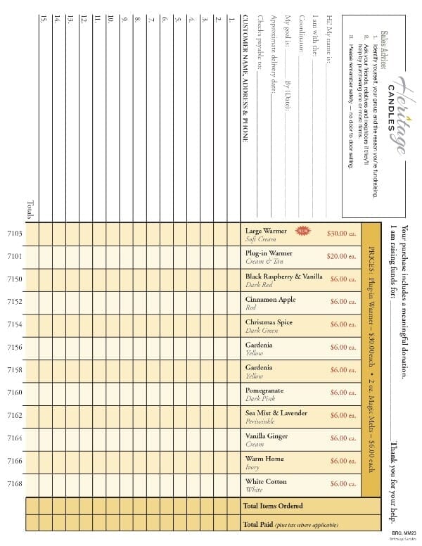 1. Order 1 Magic Melts Candle order-taker PER fundraising participant – they’re FREE of charge!