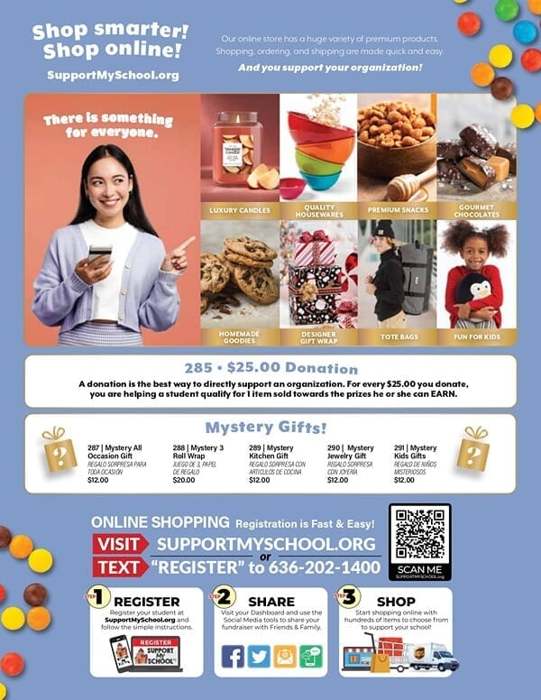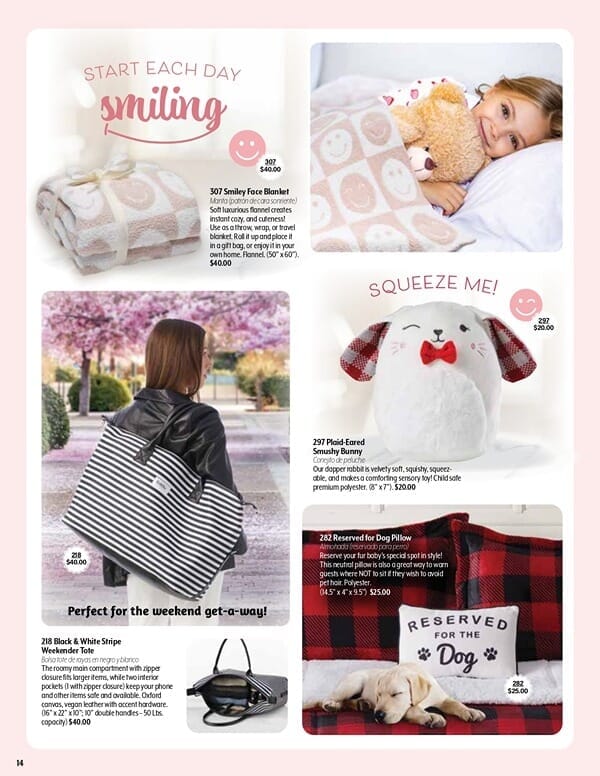 This year’s Spring shopper has something for everyone! It contains 70 items ranging from unique gifts, gourmet snacks, decadent chocolates, cheesecakes mixes, quality gift bags, tote bags, beautiful ower bulbs, Yankee candles, kitchenware and more! 33 items just $10-$15 each.