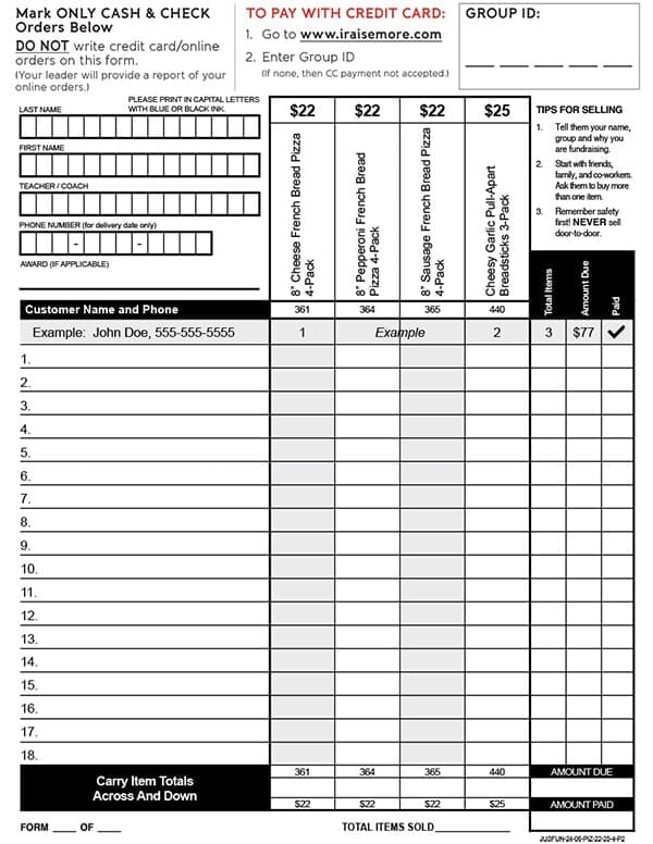 1. Order 1 Pizza order-taker PER fundraising participant – they’re FREE of charge!