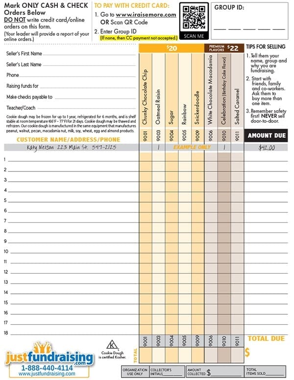 2. Have your group members show the order-taker to friends, family, neighbors, and or co-workers and invite them to purchase 1 or more items of cookie dough.(Note: Your participants will collect the funds up-front, and will take note of their supporter’s name and mailing address on the order form included).