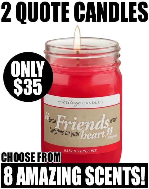 Option 1) Order online and receive our top 2 selling Quote candles: Home(Cinnamon Apple), live, laugh, love( Lavender Mist)