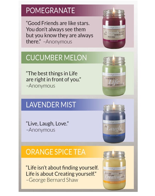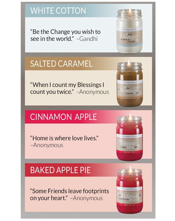 Labeled with Inspirational Quotes such as “Live, Laugh, Love!” Our #1 Selling Candle fundraiser features highly-fragrant candles hand-poured in the USA with lead-free wicks and natural wax, and have a 75-hour burn time.